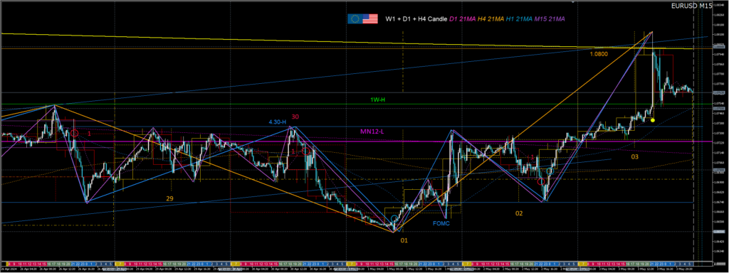- 翌日のロンドン時間、FOMCを控え、金曜の売りポジションと共に、1.0650反発×15分足21SMA上抜きでアウト。