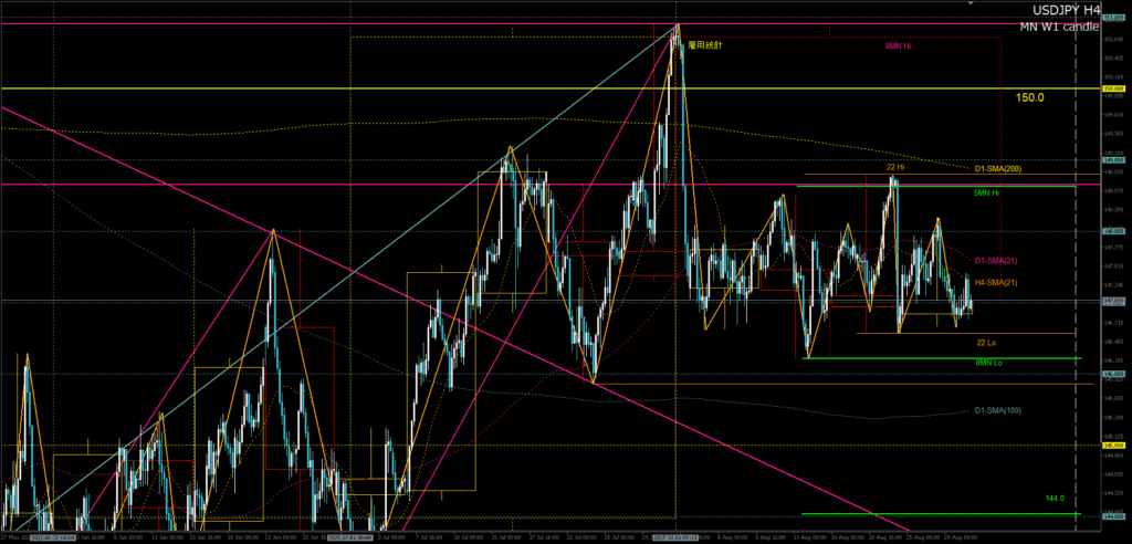 目標値1:147.50+H1-SMA21