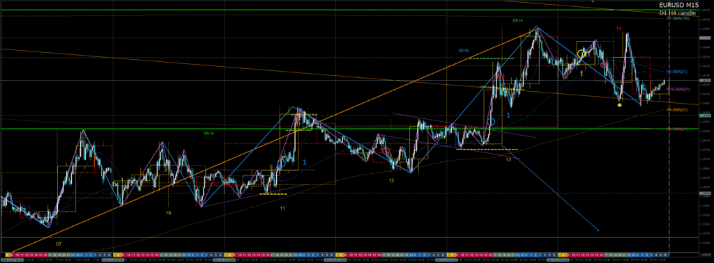 1HMトップNC抜下降3波の失敗判定には、1HWボトム2番底か15分Wwボトムが必要と見立てるも、