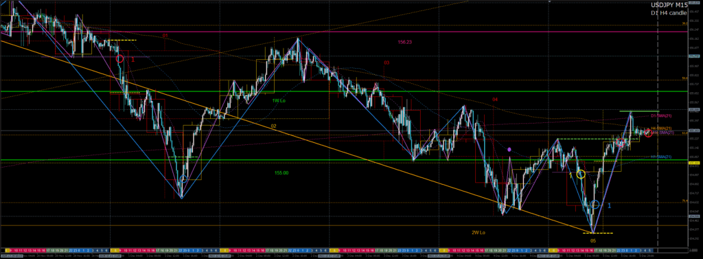今週のあらすじ:155円“基準波本命押し目”でブルベア衝突