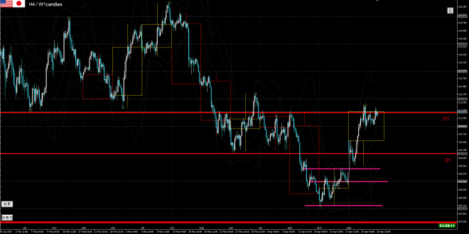 前日の値動きから日足レジスタンス111.500に強い売りがあることがわかりました。さらに、111.000に出現した黄ヒゲは、このプライスでのサポートの強さを示唆しています。