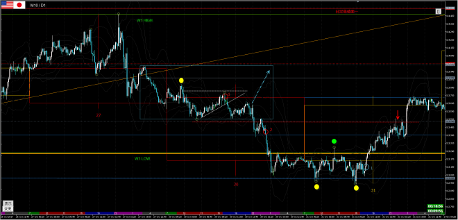 Nov.2 Thu. 114.00高値目標に達して浮動しやすい日、初心者の方は手を出さないほうがいい。
