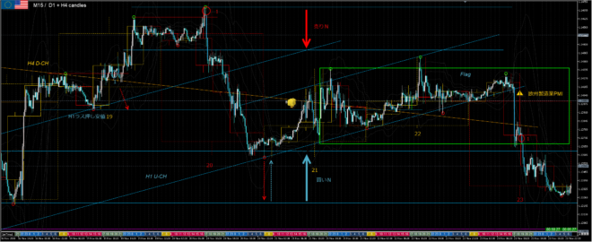 23.Fri.1時間足下降CH半値売りがあったが、米国感謝祭の連休中で、ほとんど動かなかった。