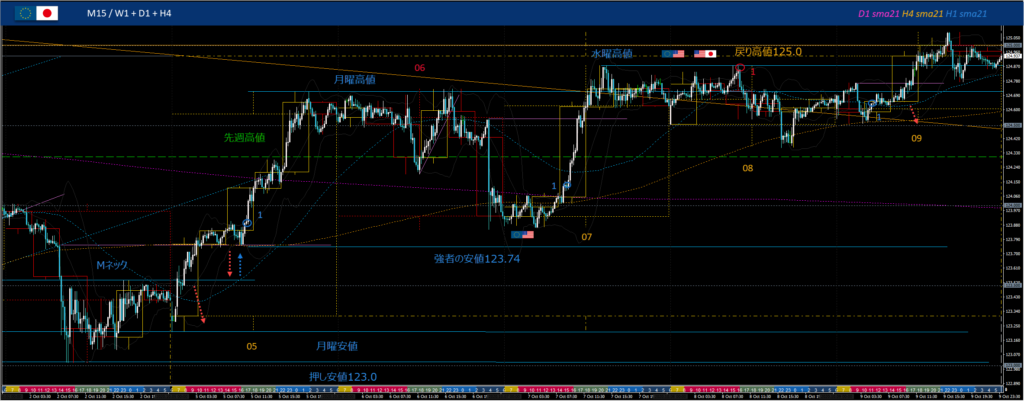- 先週高値Mトップから先週安値へ売られるか、先週高値にもう一山つくるかをイメージしていた。