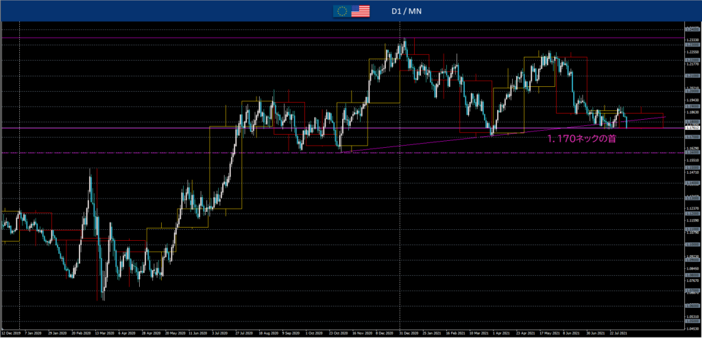 - 先週安値は日足ネック1.170の首ライン。