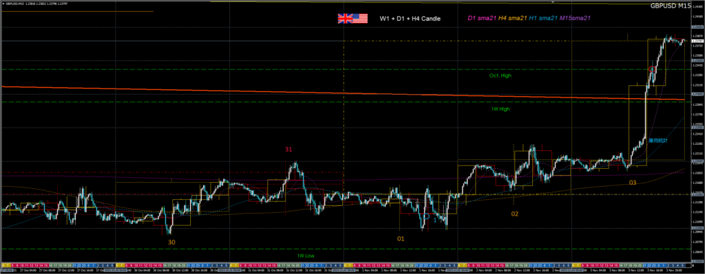 GBPUSD 15分足に週足+日足+4時間足ロウソク