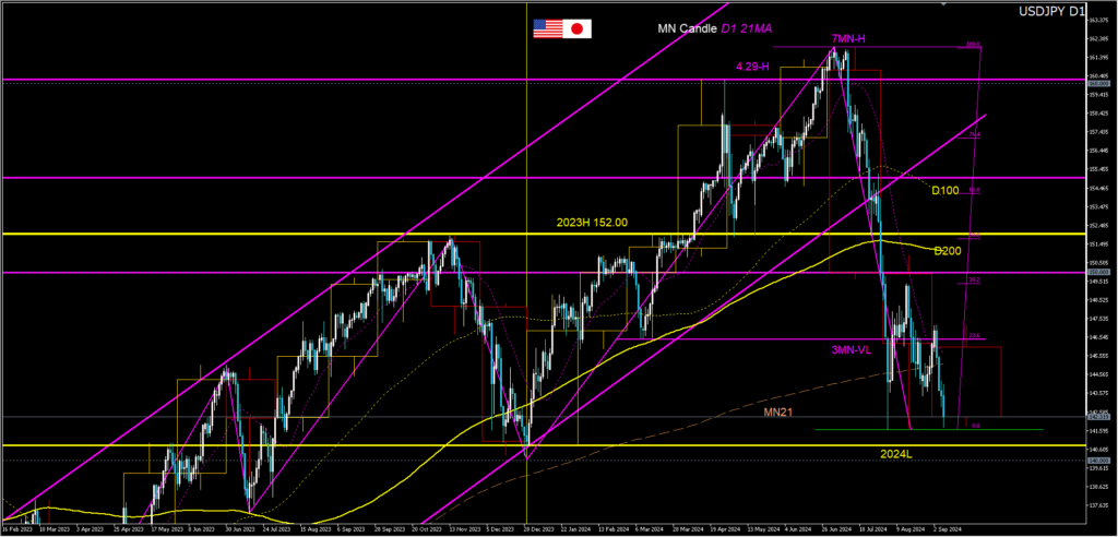 - 140円(≒2024年安値)押し安値のサポートが背景、8月安値にダブルボトムを形成中。