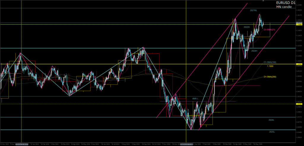 - 2022年高値(=1.15)が意識されるなか4月高値に2番天井を形成中