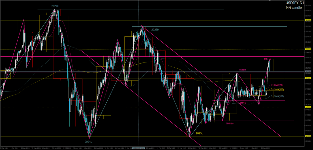• 東京時間、”高市トレード”をH1-SMA21の回復で青1ロング(153.0ダブルトップ崩れ