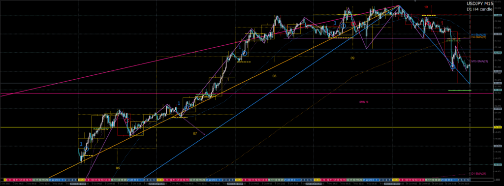 • NY時間、H4-SMA21を下抜け、151.5の反発でアウト