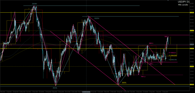 ブルのシナリオ:①高市トレードが続くようなら8月高値へロング