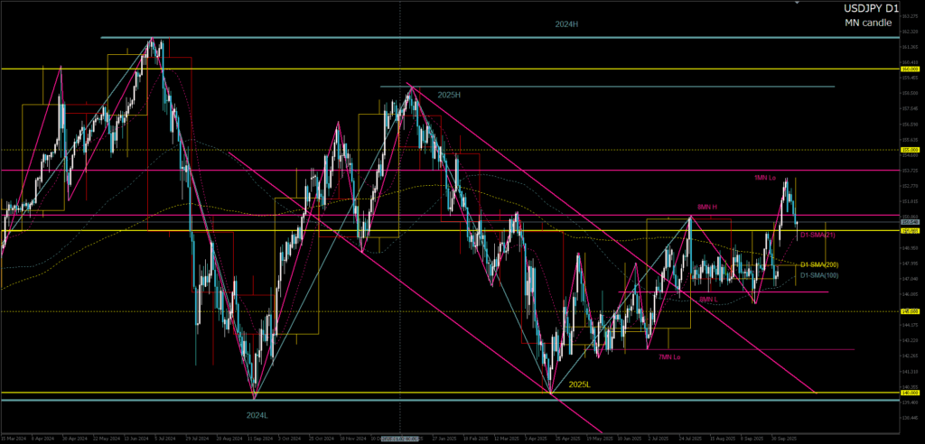 • 高市トレードで7月安値上昇波のN値≒153円まで噴き上げて反落