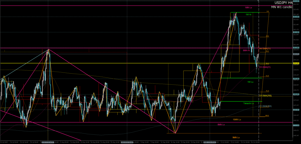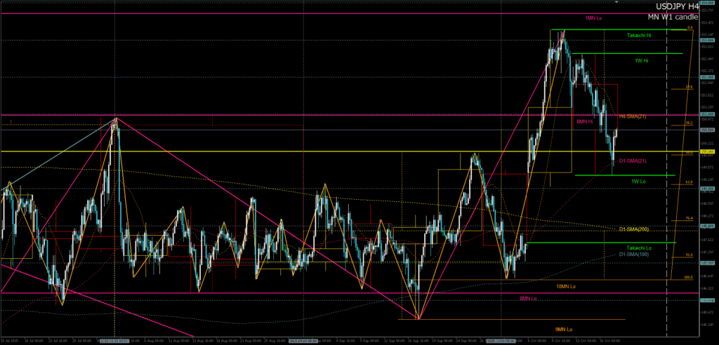 • ”高市トレード”の押し目候補→フィボナッチ38.2%=8月高値・50.0%=150円・61.8%=先週安値