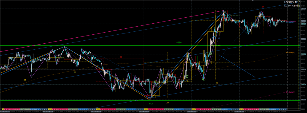 前回高値153円ダブルトップを背景に2番天井形成のプロセスを買う