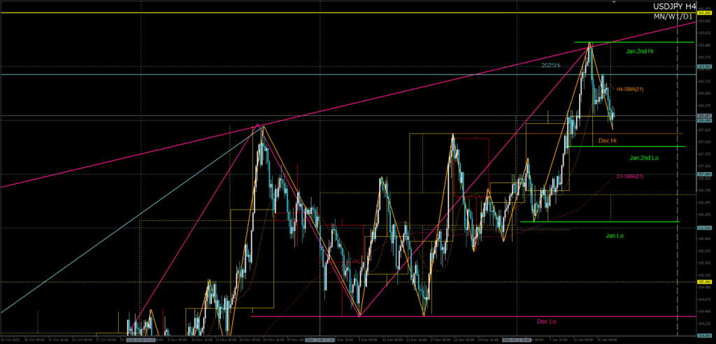 週ナビFX564(2026年01月12日〜01月16日)今週のFX相場(ドル円・ユーロドル・ユーロ円)を振り返りながら、来週以降のトレードに必ず役立つ「環境認識の核」と重要ポイントを解説します。