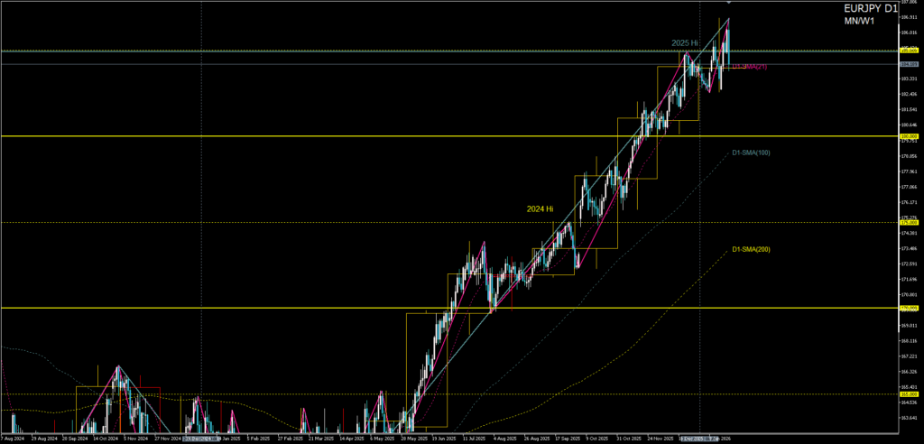 12月高値付近での押し目形成を確認後、2025年高値へ再トライのロング