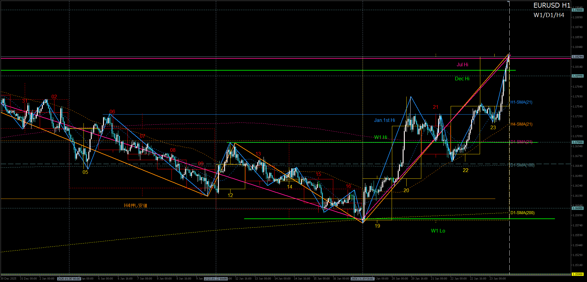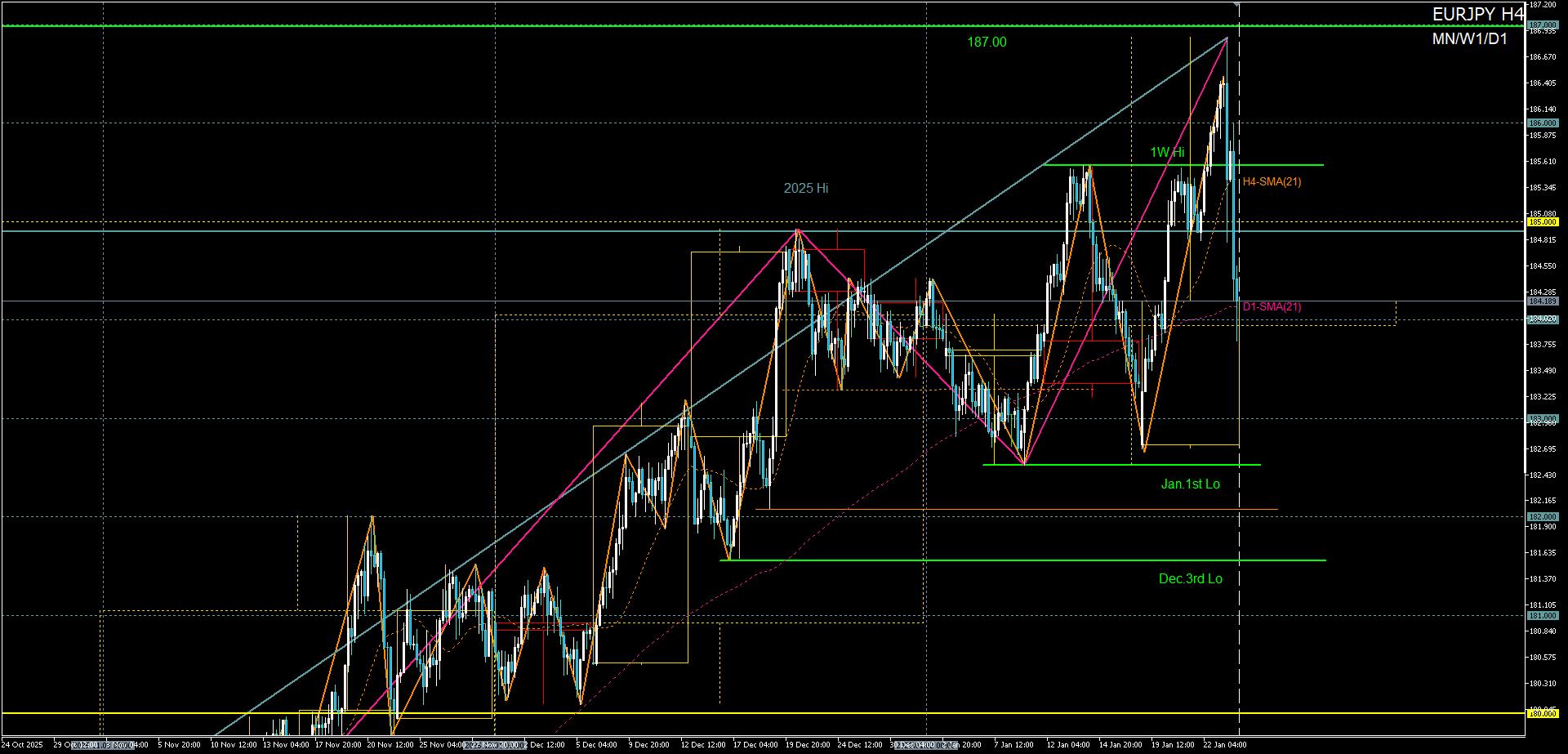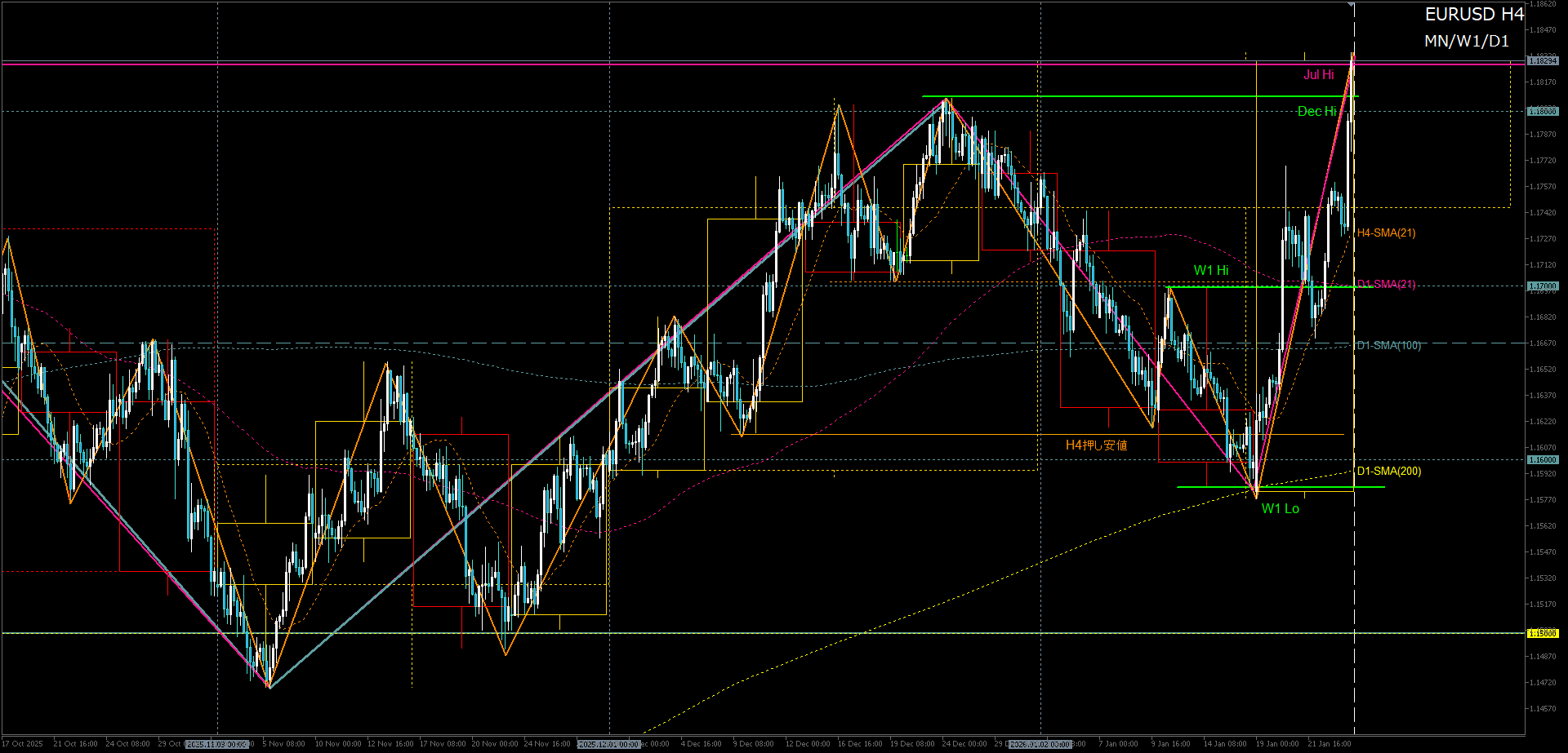 - H4上昇波の先週安値押し目買い→2025年高値への再トライ
