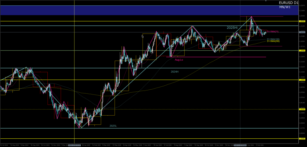 ユーロドル|2025年高値圏とD1押し目の衝突