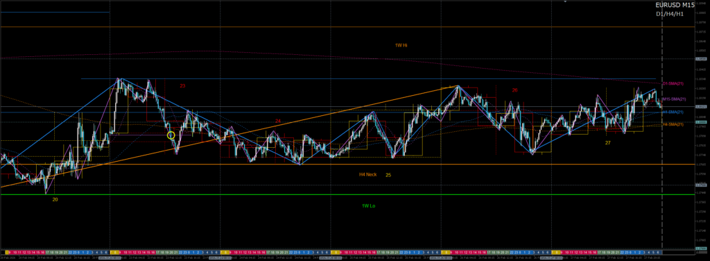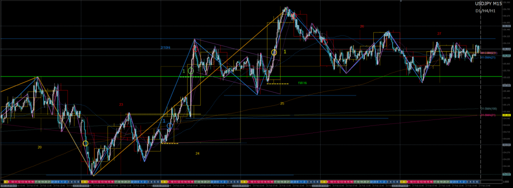 1. 先週高値のH4戻り売り失敗で2月第2週高値へロング
