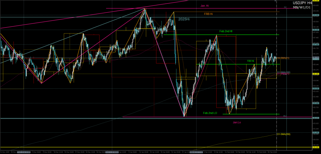 週ナビFX570(2026年02月23日〜02月27日)今週のFX相場(ドル円・ユーロドル・ユーロ円)を振り返りながら、来週以降のトレードに必ず役立つ「環境認識の核」と重要ポイントを解説します。