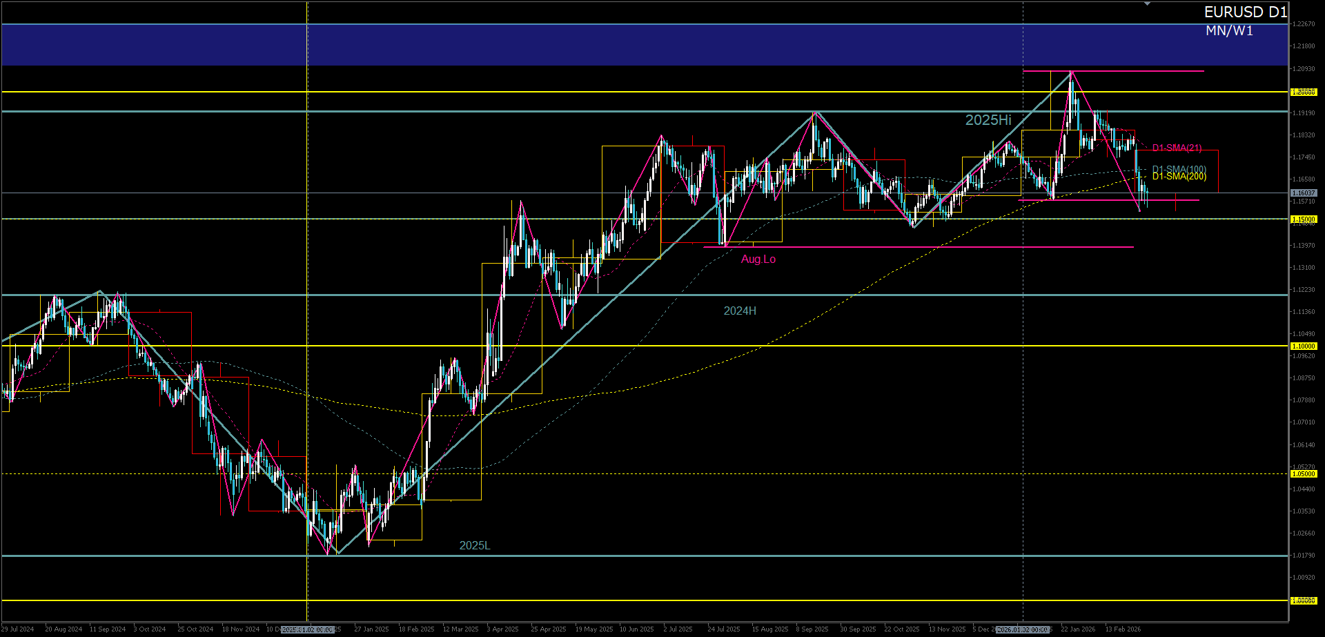 - 特大構造:大局(W1・D1)は依然として上昇相場