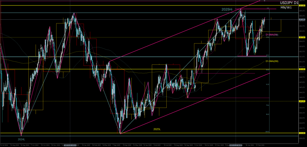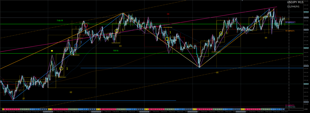 - 大構造:H4レベルは、2025年高値圏の売り圧力と152円D1押し目買いの攻防