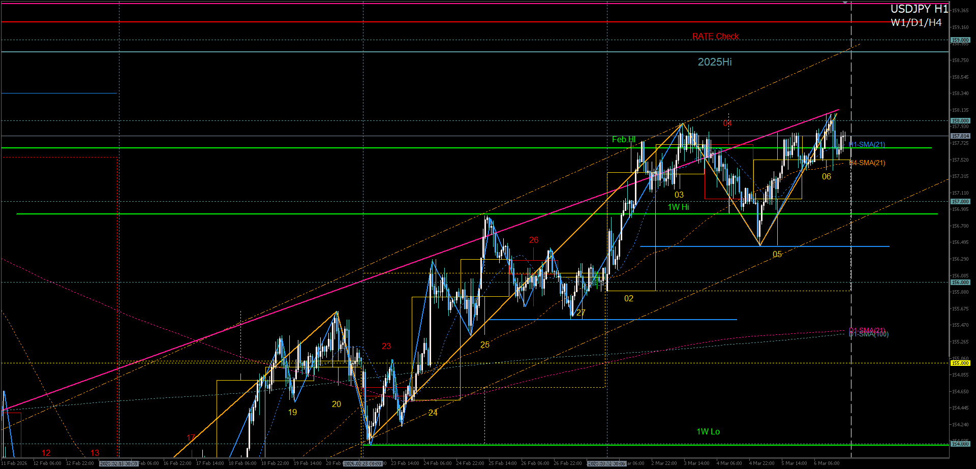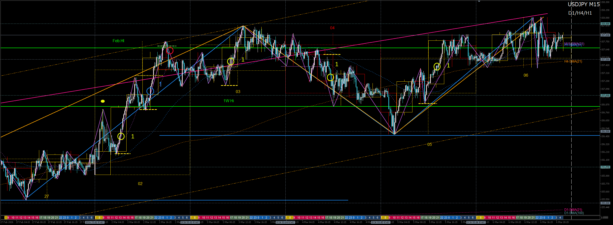 ドル円5日の上昇波は、H1トレンドの推進波ではあるが、2月高値レジスタンス目前で、