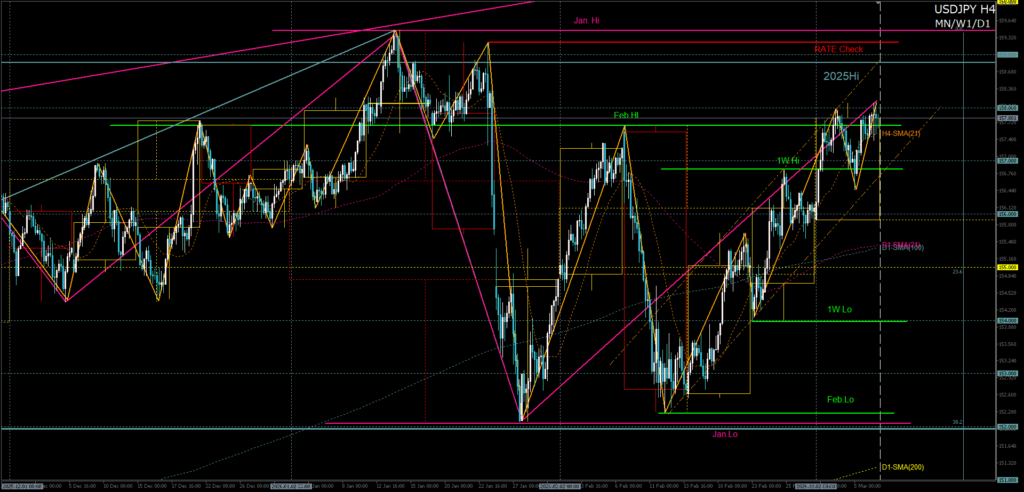 - 152円で二番底を形成するも、2月高値目前で失速。2025年高値圏の売り圧力は依然として重く、152円ダブルボトムの“完成”には至っていません。