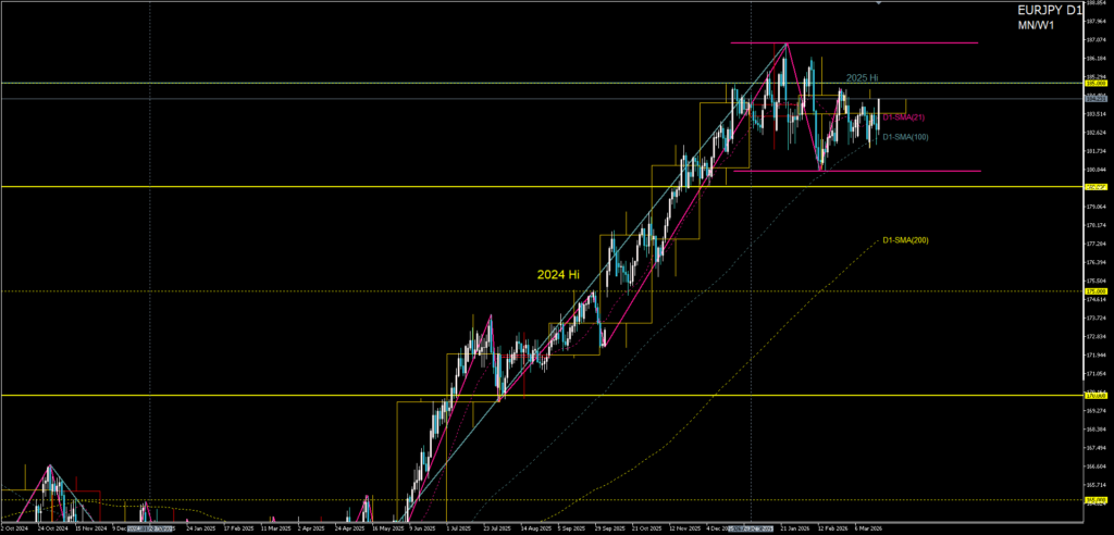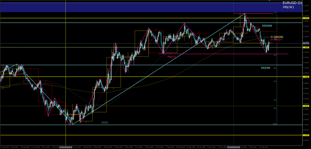 - D1大局構造:大局上昇トレンド vs 2025年高値圏レジスタンス