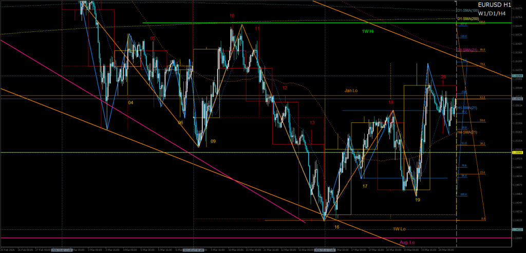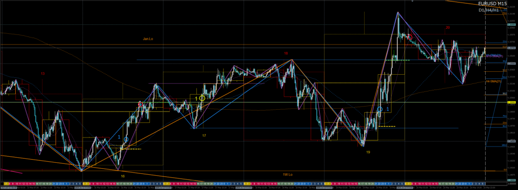 週末にかけては、H4ラス押し安値とD1-SMA21のサポートが意識され、19日の急落波に対する戻り売り候補を上抜き、大きく引き戻されました。