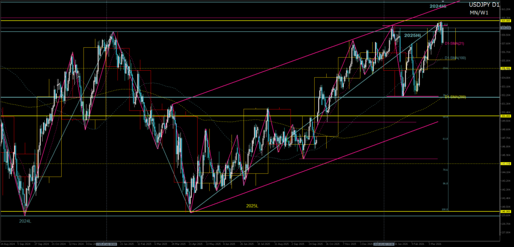 - D1大局構造:大局上昇トレンド vs 2025年高値圏レジスタンス