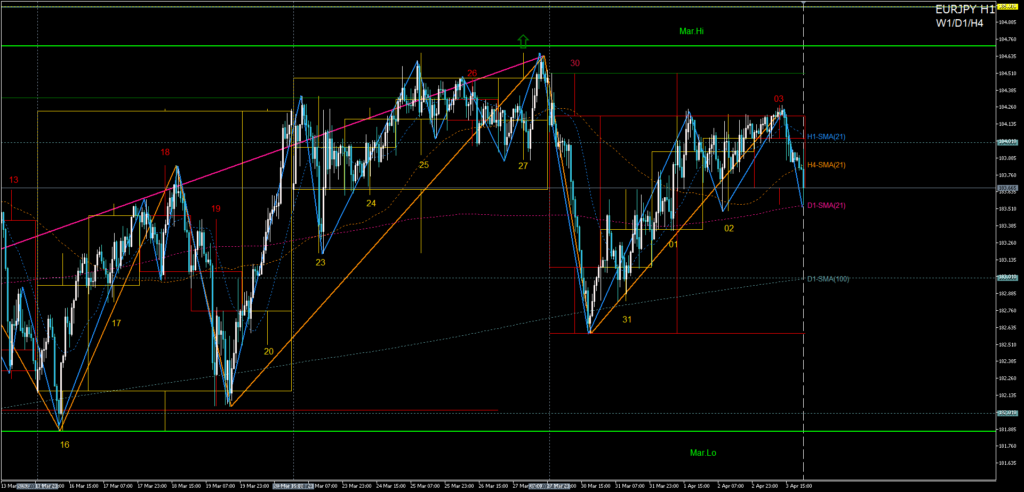 いつもご教授頂き有難うございます。今週は欧米がイースター休暇で市場参加者も少なくレンジ相場になりそうだと予想されていて、実際に月火水は相場が動きました木曜の欧州時間以降は全く相場が止まってしまい自分も週末は全くノートレードでした。週初から米ドルが強くそれに円も同期し欧州通貨は横ばいで米ドル豪ドルが逆相関という各通貨強弱の相関性が顕著で、イラン戦争が始まってからずっとこの相関になっていて今後も暫くこの流れが続くかもしれません。自分はできるだけ分かり易い通貨ペアを選択するようにしていて今のところ豪ドル米ドルが一番やり易く感じてるのですが、基本下落基調ですが買い戻しての局面でもう少し上げてきてもいいところで失速し下落する、売られ出すと陰線が大きく下落のペースが速いというように非常に分かり易いです。解説にもありましたようにもう買われないとか上げるはずなのに上がってこないという否定の形もはっきり出ることが多いのです。その時の相場状況によって分かり易いかどうかということが通貨ペアで差がつくことがあると思います。今週もユーロドルなんかは自分にはあまりよく分かりませんでした。簡単なチャートを見つけてトレードし難しいものはやらないのが一番効率的だと思いますのでしっかり頭に入れてトレードしたいと思います。