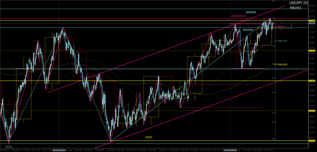 - D1大局構造:160円台の攻防(上抜け後の真偽が問われる局面)