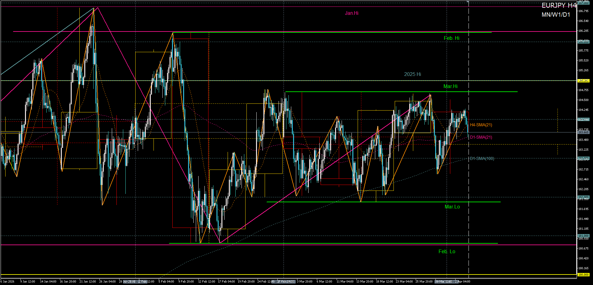 いつもご教授頂き有難うございます。今週は欧米がイースター休暇で市場参加者も少なくレンジ相場になりそうだと予想されていて、実際に月火水は相場が動きました木曜の欧州時間以降は全く相場が止まってしまい自分も週末は全くノートレードでした。週初から米ドルが強くそれに円も同期し欧州通貨は横ばいで米ドル豪ドルが逆相関という各通貨強弱の相関性が顕著で、イラン戦争が始まってからずっとこの相関になっていて今後も暫くこの流れが続くかもしれません。自分はできるだけ分かり易い通貨ペアを選択するようにしていて今のところ豪ドル米ドルが一番やり易く感じてるのですが、基本下落基調ですが買い戻しての局面でもう少し上げてきてもいいところで失速し下落する、売られ出すと陰線が大きく下落のペースが速いというように非常に分かり易いです。解説にもありましたようにもう買われないとか上げるはずなのに上がってこないという否定の形もはっきり出ることが多いのです。その時の相場状況によって分かり易いかどうかということが通貨ペアで差がつくことがあると思います。今週もユーロドルなんかは自分にはあまりよく分かりませんでした。簡単なチャートを見つけてトレードし難しいものはやらないのが一番効率的だと思いますのでしっかり頭に入れてトレードしたいと思います。