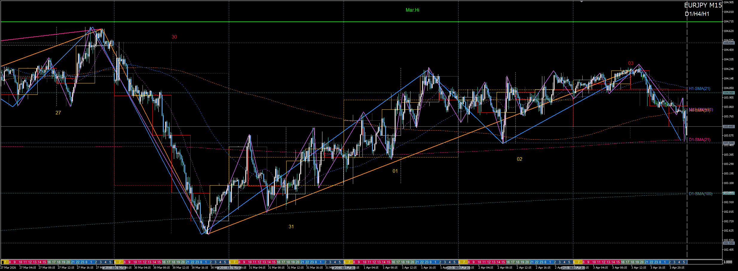 +3月末リバランス - D1-SMA21との乖離(約180ピプス)