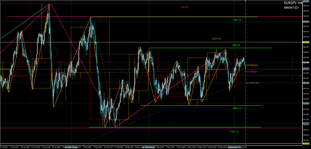 ユーロ円|3月高安でレンジ維持